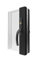 Vår utåtgående altandörr kan fås med med fyllning som linjerar med våra fönster eller som helglasad dörr. Dörren levereras med broms för att kunna låsas i öppet läget.