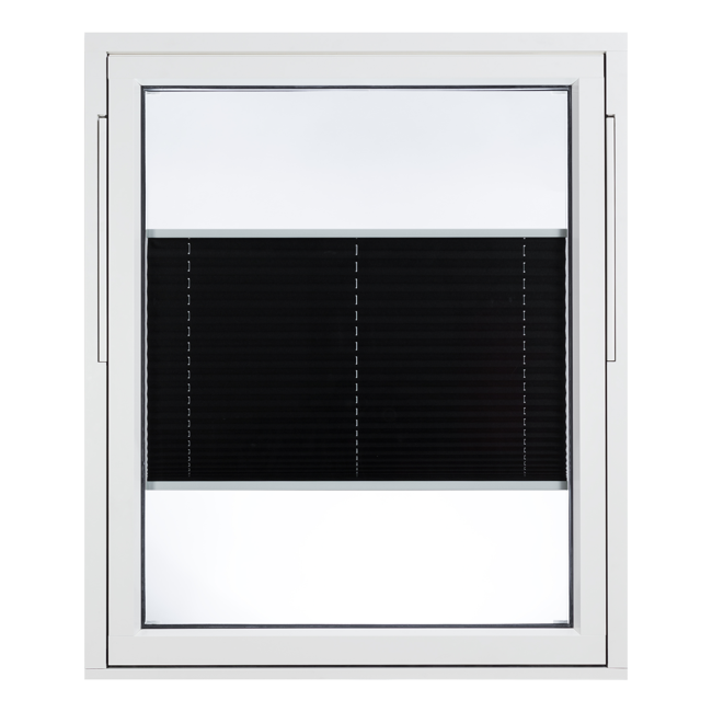 Ett sol- och insynsskydd som tack vare en smart 2-vägsmanövrering med valfri positionering kan användas både till både solskydd och insynsskydd, att den inte har några lösa linor gör också att den alltid klarar kraven för barnsäkerhet. Tyget finns att välja i fem olika färger som standard, ytterligare 13 vävar finns att välja på som tillval. Plissén monteras antingen på bågen till öppningsbara produkter och i karm på fasta fönster, väljs vid beställning. Passar till Outline 3 glas Trä och Outline 3 - glas Trä/Alud ock ej på fönster med invändig antikprofil.